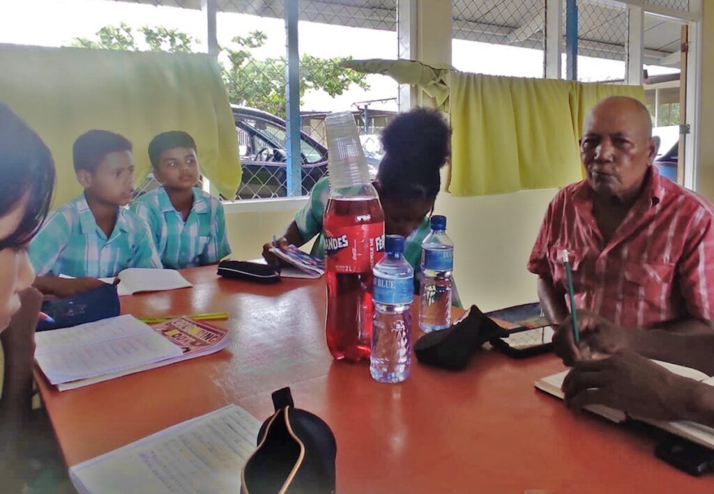 Jediël, Jermaine, O’lyvelshjo, Sheranza, Zephanayah ontmoeten Soerdj Badrising
