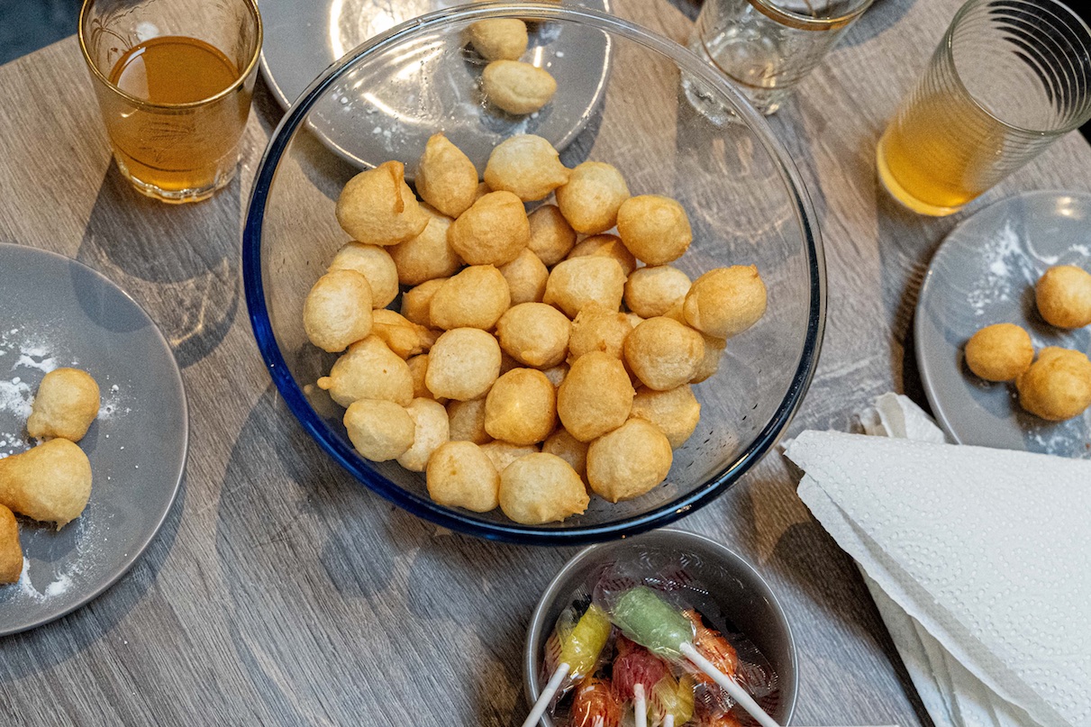 Op maandagmorgen worden Pleun, Finn, Jessica en Femke hartelijk ontvangen door Bingül Eren (1967) en haar twee dochters. De mooie Turkse kachel brandt en Finn mag er nog wat extra hout op gooien. Mevrouw Eren heeft een hele grote schaal Turkse oliebolletjes voor de leerlingen van Het Karregat in Eindhoven gebakken en er staan lolly’s op tafel. Ook mogen ze Turkse thee proeven, terwijl ze hen leert hoe je ‘hallo’ zegt in het Turks: mehraba. Mevrouw Eren is geboren in Turkije en kwam op 18-jarige leeftijd naar Nederland.