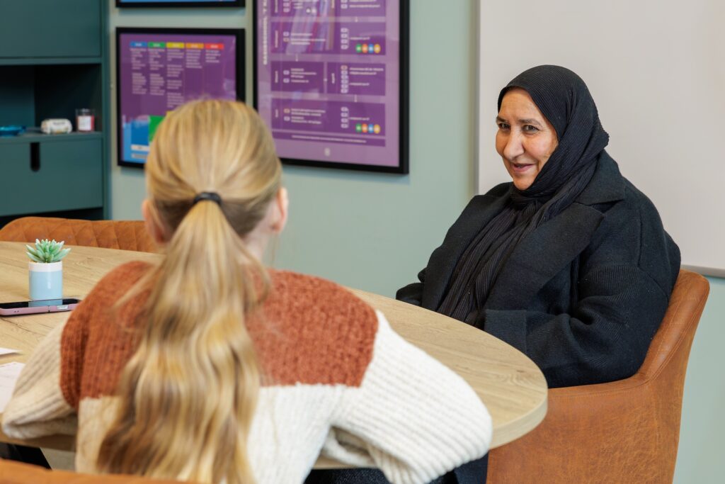 Het is een spannende ochtend. Lucas, Jonas en Lana van Het Karregat in Eindhoven, mogen in de directeurskamer een interview houden met de 75-jarige Malika Hamdouni. Ze is geboren in Oujda, Marokko. De kinderen stellen zich voor aan haar en zijn eigenlijk wel klaar voor het interview. ‘Het was cool om hier te zitten’, zeggen ze na afloop.
