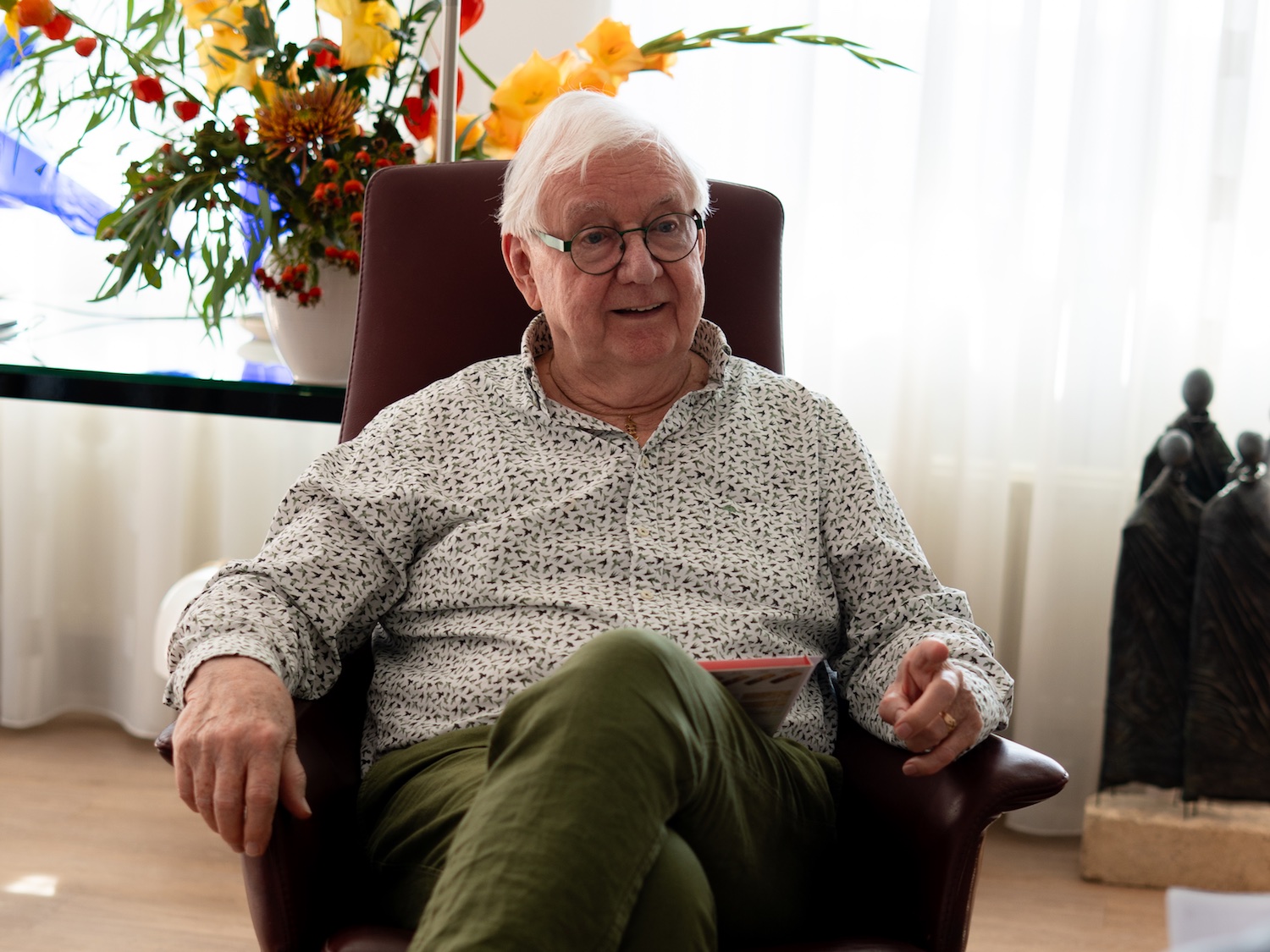 Cas, Mees en Mikki van basisschool de Hasselbraam beginnen een tikje onwennig aan het gesprek met Jan Sprengers, maar dat gaat al snel over. Meneer Sprengers was bijna 3 jaar toen de oorlog begon. Hij praat ogenschijnlijk makkelijk over de oorlog van destijds, en er wordt ook nog gesproken over de oorlogen van nu.