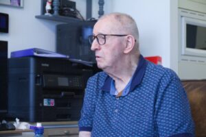 De 83-jarige Jan Klercx maakte als kind de Tweede Wereldoorlog mee in Eindhoven; hij woonde bij de Theresiaparochie, vlakbij het vliegveld. Hij was nog jong en beleefde deze periode daarom heel anders dan volwassenen. Ondanks schaarste en onzekerheid ging het gewone leven voor een kind toch gewoon door, vertelt hij. Ruben, Jurre, Rufta en Elina van de Klimboom luisteren aandachtig naar zijn verhalen. Zonder telefoon, zonder fiets en vaak met maar heel weinig te eten was het leven heel anders dan nu.