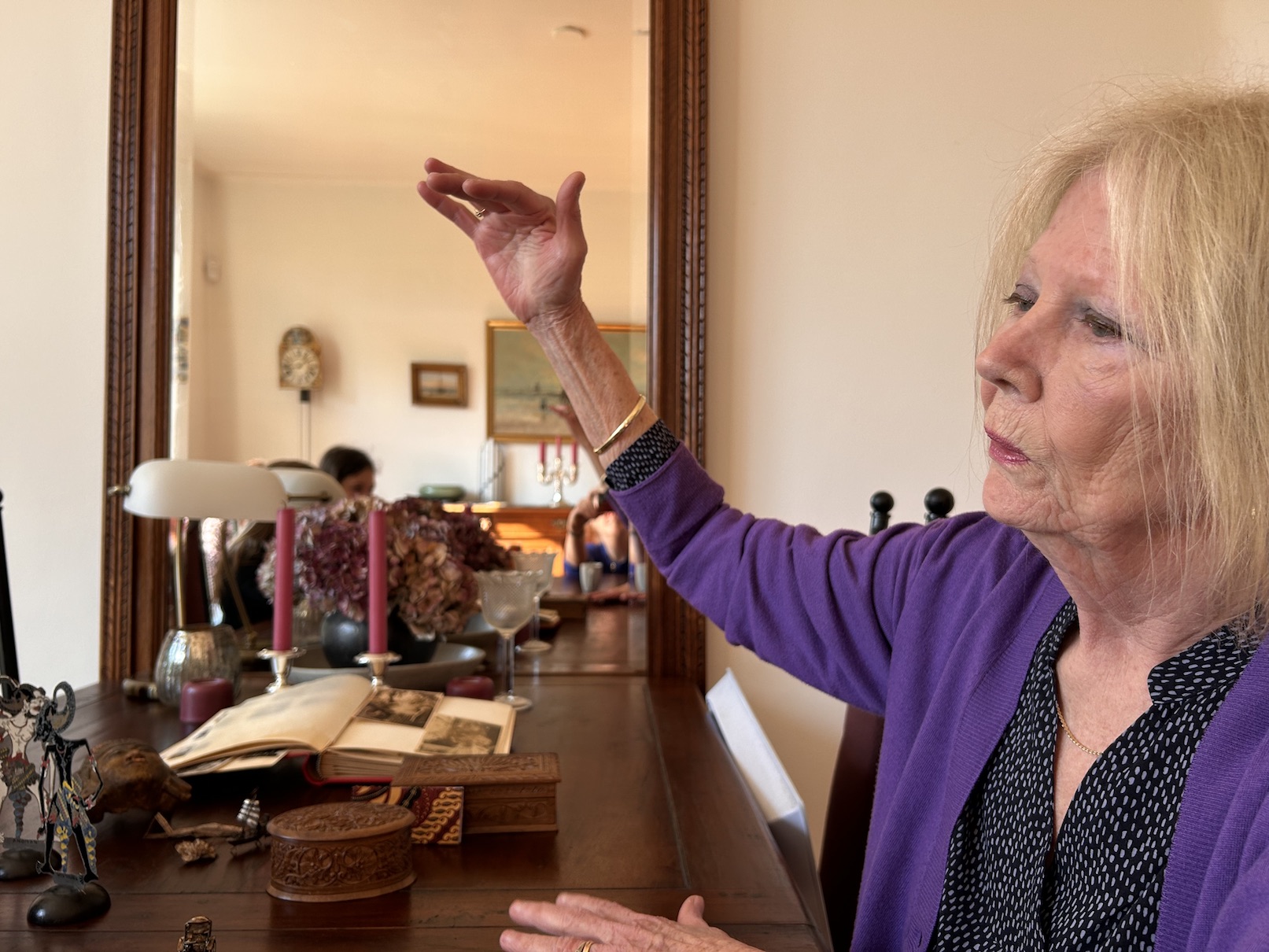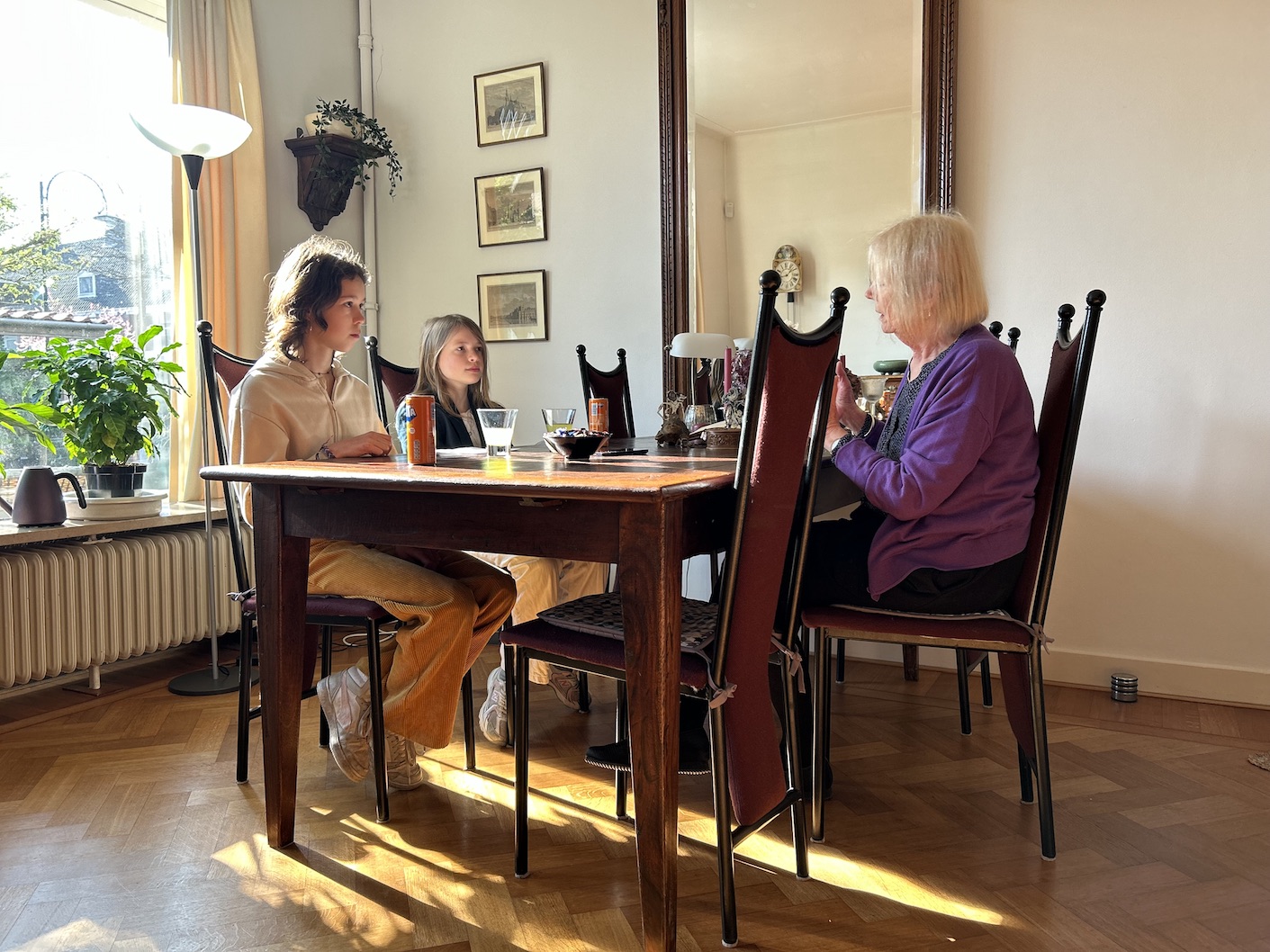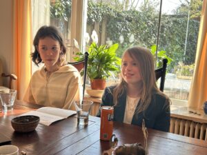 Op deze zonnige donderdagmorgen komen Juna en Isabel op de fiets aan bij Liesbeth Moerman (1948). De leerlingen van De Talisman in Eindhoven worden hartelijk ontvangen door mevrouw Moerman in haar woning waar de sfeer wordt bepaald door de prachtige houten meubels met verfijnd houtsnijwerk en de vele planten en schilderijen. Op tafel liggen met de handgemaakte zilveren sieraden en houten beeldjes uit Indonesië en ook een fotoalbum met oude foto’s van vroeger. Mevrouw Moerman biedt de kinderen een blikje Fanta aan en zet wat chocolaatjes op tafel.