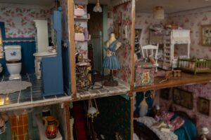 ‘Dat is mijn poppenhuis. Een prachtige poppenhuis dat ik op 8-jarige leeftijd heb gekregen van mijn vader en in de loop der jaren zelf heb ingericht. In de kast staat een suikerschedeltje, die de Día de los Muertos symboliseert. Ik hou veel van die Latijns-Amerikaanse feestdag en toevallig valt mijn verjaardag op dezelfde dag. We vierden ook Advent-feestjes in mijn jeugd. Mijn beste herinnering is dat mijn tante zich verkleedde als de Kerstman en cadeautjes uitdeelde aan alle kinderen op het feest. Soms kwamen er wel vijftig mensen naar het huis!’