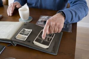 ‘Ik zal het jullie laten zien, hier is een foto van mij en mijn vriendjes. Dit was een Indiaanse jongen en dit was een Creoolse. Wij hadden het samen altijd goed met elkaar. Onze overbuurmeisjes waren hindoestaans en daar speelden wij ook mee. Maar omdat mijn vader bij het Nederlandse leger zat, stond ik ook wel eens verkleed in legertenue voor het standbeeld van koningin Wilhelmina te poseren. Het geeft de verschillende werelden weer in Suriname.