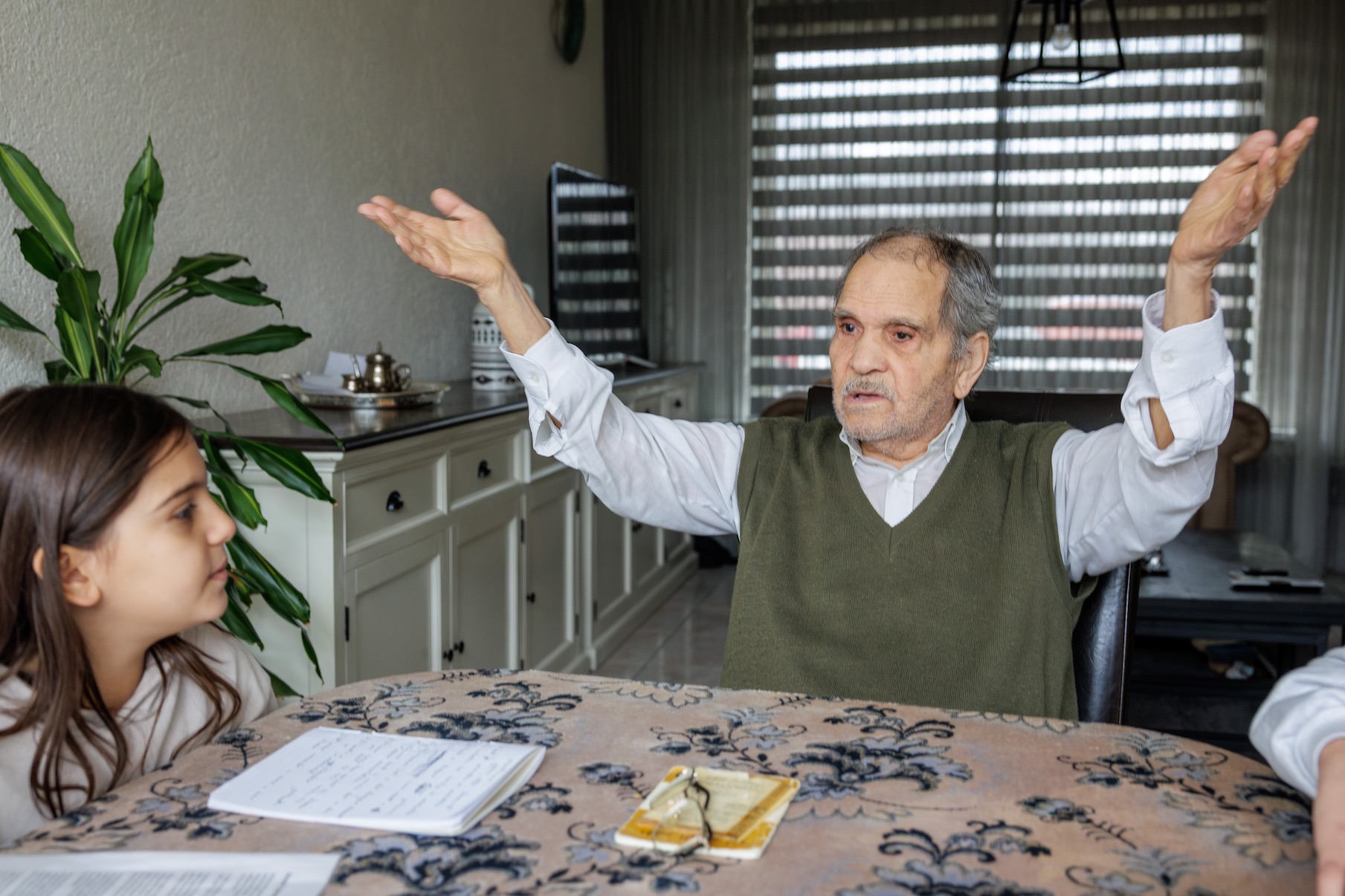 Ahmed El-Farah zit met zijn vrouw en dochter te wachten op de kinderen die hem komen interviewen, Amani, Zoë, Diya en Elisa. Amani kent hij erg goed, dat is zijn achterkleindochter, hij vindt het leuk dat hij een stukje familiegeschiedenis met haar kan delen. Hij heeft wat dingen klaarliggen die hij de kinderen wil laten zien. Zo heeft hij een oude identiteitskaart van Marokko en zijn eerste Nederlandse verblijfsdocumenten. Ook heeft hij de blouse die hij aanhad tijdens zijn reis naar Nederland, erbij gepakt, dit alles laat hij trots zien.