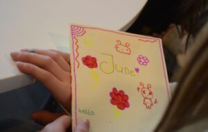 Stanislaw, Ysaira, Jolie, June en Luca komen met z’n vijven naar het verzorgingstehuis in Heerlen om mevrouw Frijns te interviewen. Ze hebben op school vragen bedacht die ze haar willen stellen. Stanislaw maakt de foto’s. Met z’n allen nemen ze plaats in een gezellig hoekje, om vervolgens om de beurt een vraag te stellen.