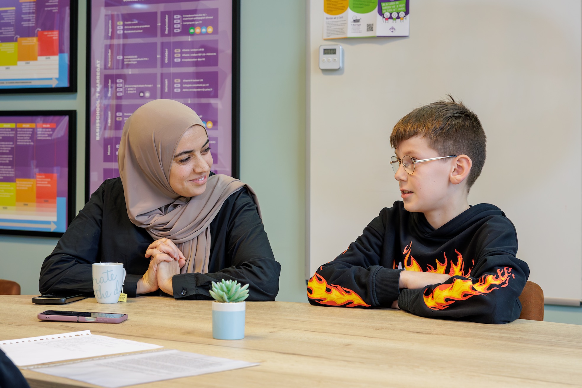Het is een bijzondere ochtend. Na alle lessen over interviewen mogen Sjoerd, Sara en Oscar van basisschool Het Karregat in Eindhoven eindelijk in het echt een interview houden. Dat doen ze met Hajar Adnane, 43 jaar en afkomstig uit Larache in Marokko. Zij is vanuit Spanje naar Nederland gekomen. De kinderen hebben er zin in, maar zijn ook een beetje gespannen.