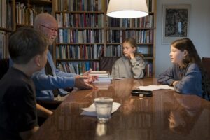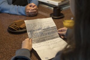 Faas, Dirkje en Britt van basisschool de Hasselbraam in Eindhoven zijn op bezoek bij Ruud Nordt (1937). Hij heeft boeken met plaatmaterieel en zijn eigen tekenboekjes klaargelegd om te vertellen hoe het was om als jong kind de oorlog en de Hongerwinter mee te maken, vlakbij de Noord-Hollandse kust.
