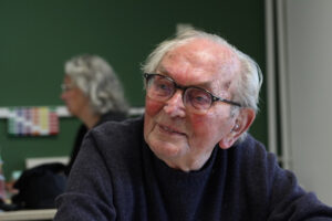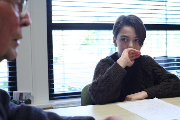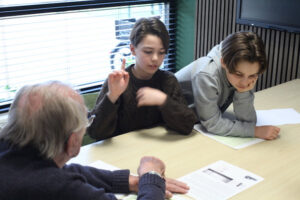 Jaap Staadegaard (90) komt op zijn fiets naar de Willem-Alexanderschool in Bergen, het is een stralende dag! Rinad, Florence, Barend, Liam en Samuel interviewen hem over zijn herinneringen aan de oorlog. Meneer Staadegaard is heel vrolijk en vertelt graag en helder. Hij laat op allerlei plattegronden zien waar wat gebeurde.