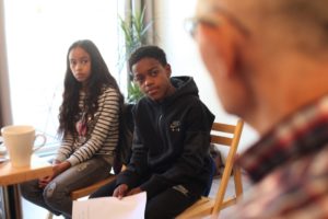 Na wat opstartproblemen komen Furkan en Charlotte van het Vox College aan bij de bibliotheek in De Banne, in Amsterdam-Noord. Daar gaan ze Chandra Jawalapersad interviewen. Mevrouw Jawalapersad is 68 jaar en van Hindoestaans-Surinaamse afkomst. Ze krijgen thee en een Tucje en dan kan het interview beginnen.