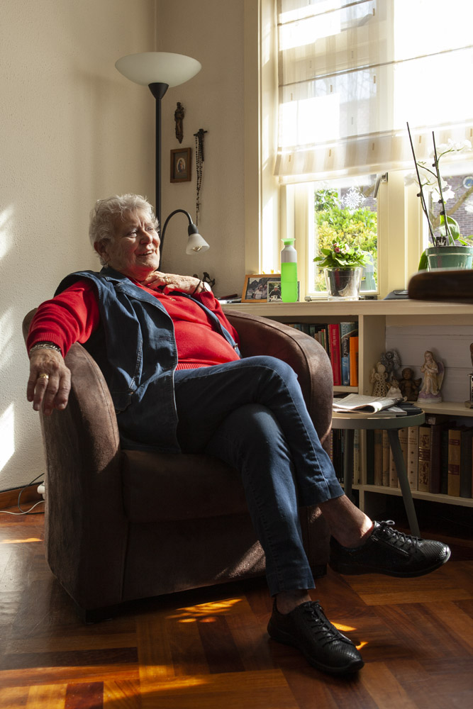 ‘Ik ben in 1936 geboren en heb tijdens de hele oorlog in de Nigellestraat op nummer 126 gewoond. In 1944 kwam er een broertje bij. Mijn vader werkte bij Shell, maar moest het leger in, dat was in die tijd verplicht. Hij werd gelegerd in IJmuiden. Op een dag in 1940 ben ik met mijn moeder naar IJmuiden gegaan. Ik stond samen met haar en mijn vader op een heuvel en zo zagen we hoe Duitse auto’s IJmuiden kwamen binnen rijden. Mijn vader moest huilen omdat hij wist dat de Tweede Wereldoorlog was begonnen. De volgende dag ging hij gewoon weer aan het werk want het leven ging door.’