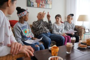 Jack Eljon was drie toen de oorlog begon en begreep niets van wat er om hem heen gebeurde. “Ze komen eraan!” werd hem verteld. Wat er in de vijf volgende, heftige jaren met zijn Joodse familie en hemzelf gebeurde, vertelt hij aan Sam, Mohamed en Florian van de 3e Daltonschool in Amsterdam-Zuid.
