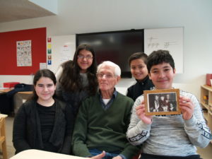 Fred Dubiez was pas drie jaar toen de oorlog begon, maar kan Tom, Oskar, Floris en Rens van de Dongeschool nog veel vertellen. Dat doet hij in het huis waar hij tijdens de oorlog ook al woonde. Indrukwekkend is de lijst met namen, geboorteplaatsen en plaats van overlijden van veel van zijn familie van moeders kant die hij hun toont.