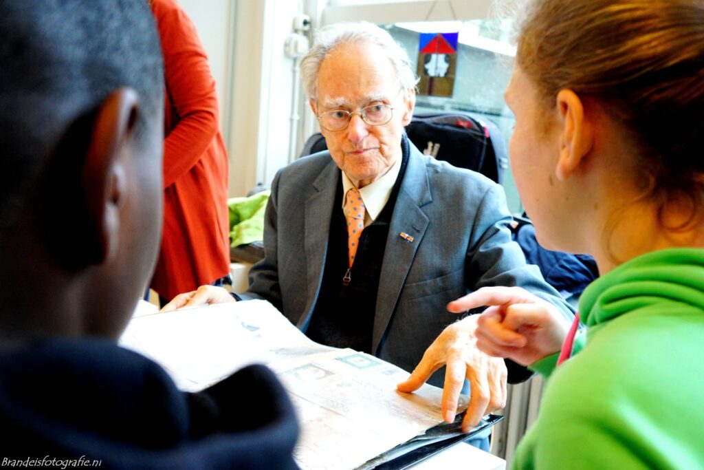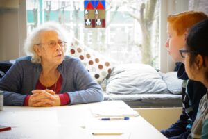 ‘Wij zijn Annie-Sterre, Rayan en Tsztou en wij interviewden mevrouw Mater. We vonden haar een heel opgewekte vrouw, ondanks alles wat ze heeft meegemaakt. In de oorlog was haar moeder ziek. Omdat zij een Joodse vrouw was, had zij geen recht op medicijnen. Pas toen haar niet-Joodse vader haar papieren had vervalst, kon ze medicijnen krijgen. Ze is echter in het laatste jaar van de oorlog overleden.’