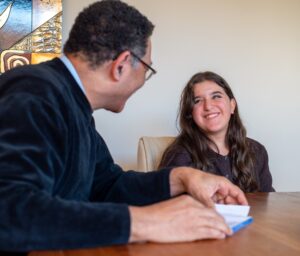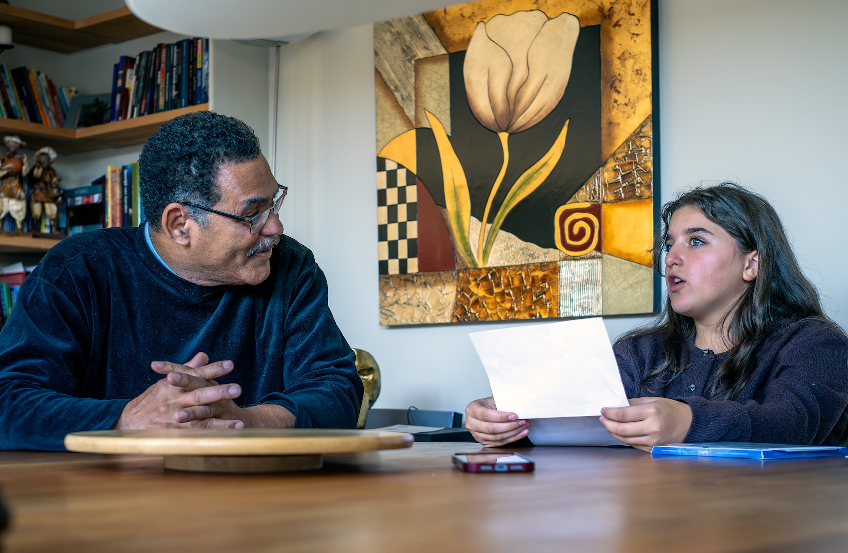 Het is even zoeken, maar dan bellen Safouane, Kadriye en Adi van basisschool De Schelp uit Eindhoven aan bij Winston Gibbes (1951). Gastvrij doet hij de deur open en leidt ze rond in zijn bungalow met een mooie patio. De kinderen kijken hun ogen uit en gaan aan de grote ronde tafel zitten, klaar om hun vragen te stellen. Na afloop krijgen ze een zakje chips, waar ze ontzettend blij mee zijn. Ze vinden het erg gezellig bij meneer Gibbes. Hij was 22 jaar toen hij uit Curaçao naar Eindhoven kwam om te studeren.