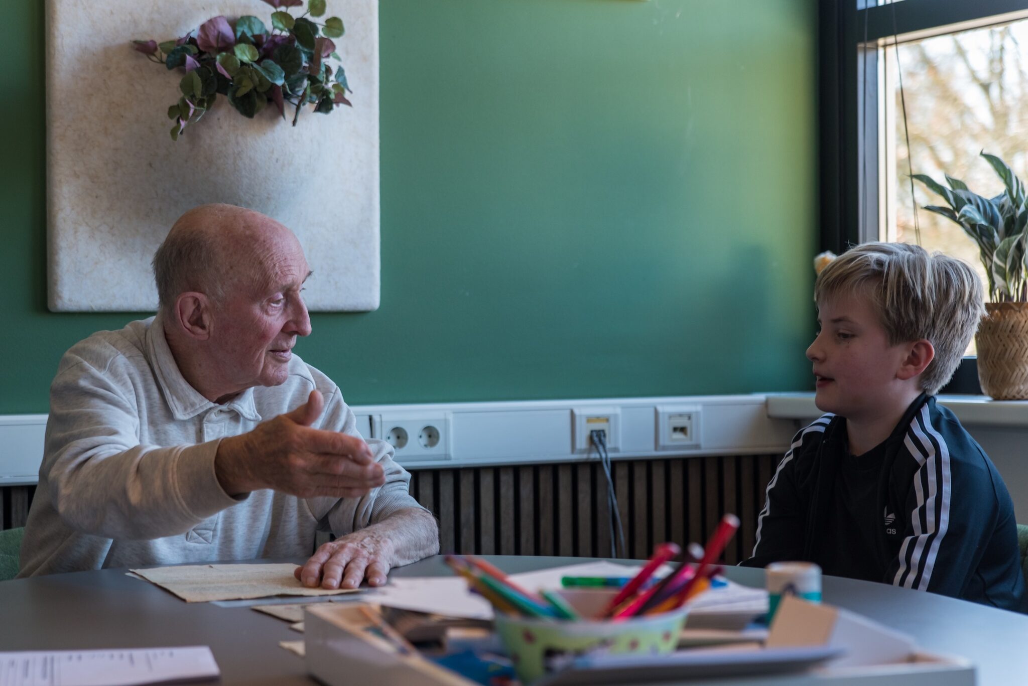 Alex Waslander (90) is er al als de kinderen de lerarenkamer van de Willem-Alexanderschool in Bergen binnenlopen. Hij is op de fiets en heeft allerlei bonnenboekjes bij zich. Magnus, Seth, Willemijn, Jill en Lola installeren zich rond de grote tafel en beginnen meteen! Meneer Waslander was 5 jaar toen de oorlog begon en