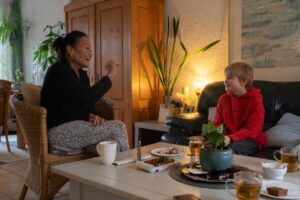 Jonas, Noah en Angelina vinden het best spannend om aan te bellen bij het huis van de 70-jarige Hedy Forbs. Maar de leerlingen van Het Karregat in Eindhoven worden warm ontvangen met gevulde speculaas en Lotusthee. Al snel starten ze het interview. Mevrouw Forbs vertelt honderduit. Ze werd in 1945 geboren in Bogor en groeide op in Jakarta. Ze maakte een lange reis op de ‘Oldenbarnevelt’ naar Nederland.