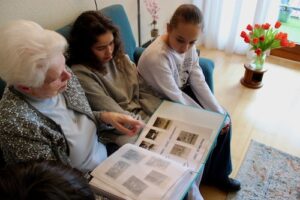 Nazario, Jedaiah, Zeynep, Han en Murat gaan van OBS De Spiegel uit Zaandam gaan met juf Nurten mee het huis van Martha Fosch. Ze woont op de 4e etage met een prachtig uitzicht over Zaandam. Haar gezellige huis vol met foto’s aan de wand en veel boeken maken indruk op de kinderen. ‘Ik ben in Suriname geboren tijdens de oorlog. Ik was nog een baby toen mijn vader overleed, dus ik heb hem niet persoonlijk gekend. Hij heette Reinier. Mijn moeder is hertrouwd met mijn stiefvader en hij wordt dit jaar 103 jaar.’