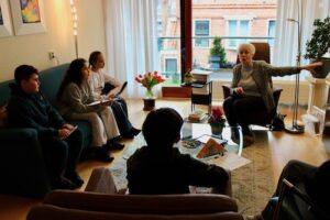 Nazario, Jedaiah, Zeynep, Han en Murat gaan van OBS De Spiegel uit Zaandam gaan met juf Nurten mee het huis van Martha Fosch. Ze woont op de 4e etage met een prachtig uitzicht over Zaandam. Haar gezellige huis vol met foto’s aan de wand en veel boeken maken indruk op de kinderen. ‘Ik ben in Suriname geboren tijdens de oorlog. Ik was nog een baby toen mijn vader overleed, dus ik heb hem niet persoonlijk gekend. Hij heette Reinier. Mijn moeder is hertrouwd met mijn stiefvader en hij wordt dit jaar 103 jaar.’