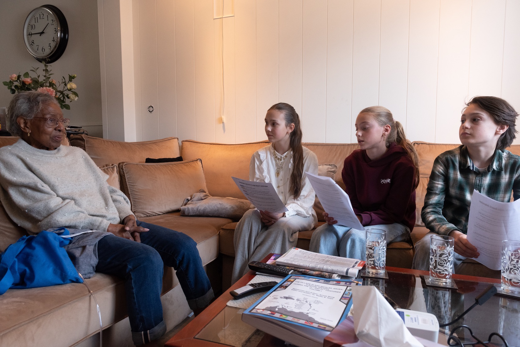 Heel dicht bij school woont de 87-jarige Jessica Mollen-van Putten. Anna Rosa, Elia en Lotte van basisschool De Talisman in Eindhoven gaan te voet op pad om haar te interviewen. Wanneer ze aanbellen, doet haar dochter Roxy de deur open. Ze ontvangt hen hartelijk en warm. Ook zij neemt deel aan het interview en helpt haar moeder bij het beantwoorden van de vele vragen die de drie leerlingen hebben voorbereid. Die vragen gaan over het leven op Aruba en de sporen van het koloniale verleden die daarin een rol spelen.